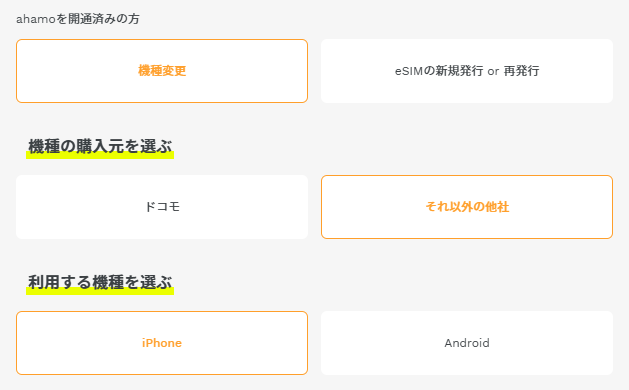 このあと、メニューがたくさん出てくるんですよね。機種変更の場合、どれを選べばよいのかと迷ってしまいました。